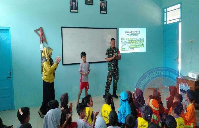 Siswa dan siswi SDN 2 Kedungrejo, dengan didampingi oleh Kepala Sekolah SDN 2 Subarni dan Guru pendamping Wardoyo, sangat antusias mengikuti penyampaian materi wawasan kebangsaan (Wasbang)/ Bela Negara oleh Serka Agung Sutrisno.