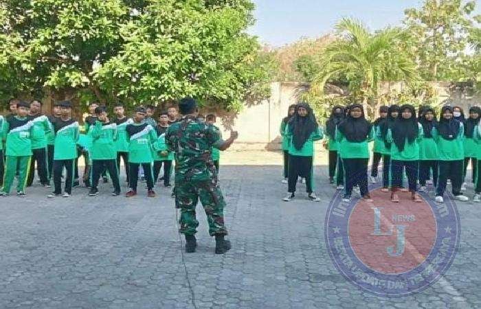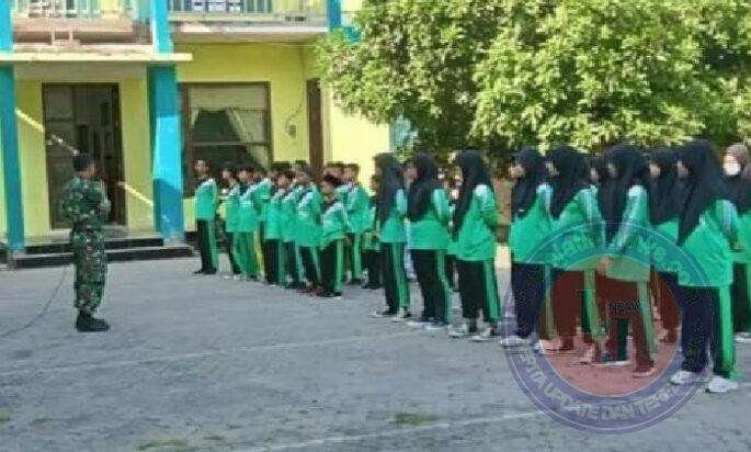 Kali ini Serma Fitra Purwanto bersama Sertu Zainul menyampaikan materi tentang penguatan karakter dalam pelatihan PBB serta pembekalan wawasan kebangsaan kepada 40 siswa siswi SMP NU Laren.