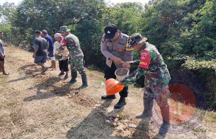 Hari ini kita maksimalkan pekerjaan ini, sejak kemarin sudah kita kerjakan dengan menghimpun karung pasir dan tanah urug, hari ini kita pasang secara maksimal di tempat longsor, tukas Babinsa Serda Ahmad Yani.