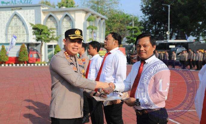 Sejumlah personel Polres Gresik tampak sumringah karena kerja keras mereka diapresiasi.