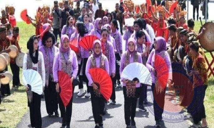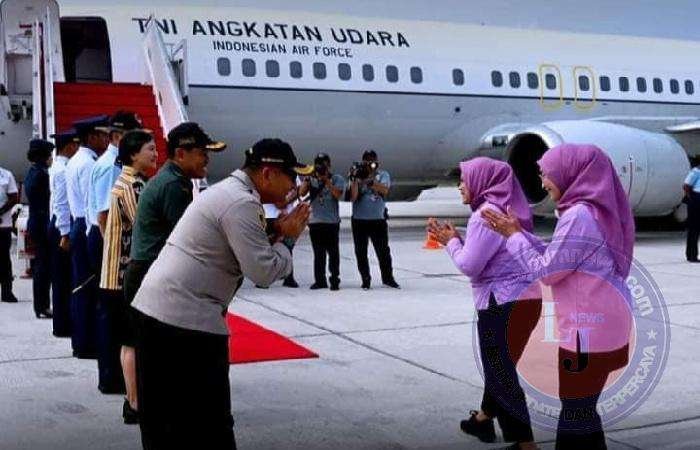 Menyambut Ibu Iriana dan Ibu Wury di bawah tangga pesawat yakni Ibu Hani Pramono Anung, Ibu Liza Thohir, Ibu Ida Budi G. Sadikin, Ibu Endang Budi Karya Sumadi, Ibu Ipuk Fiestiandani Azwar Annas, Ibu Arumi Bachsin Emil Dardak, Ibu Yesika Toni Harmanto, dan Ibu Shally Farid Makruf.