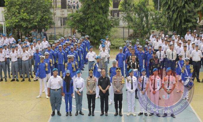 Pada kesempatan ini, Kapolres Pelabuhan Tanjung Perak AKBP Herlina turun langsung menyapa ratusan pelajar di SMK KAL-1.