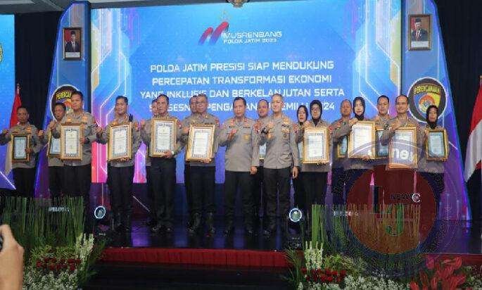 Pada kesempatan tersebut sejumlah penghargaan diserahkan ke jajaran Polda Jatim. Salah satunya penghargaan kepada Polres Gresik, atas keberhasilannya meningkatkan kualitas pelayanan publik Polri.