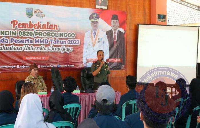 PROBOLINGGO lintasjatimnews.com – Komandan Kodim 0820/Probolinggo Letkol Arm Heri Budiasto memberikan pembekalan kepada para mahasiswa yang melaksanakan program mahasiswa masuk desa (MMD) di wilayah Kecamatan Pajarakan, Senin (31/7).