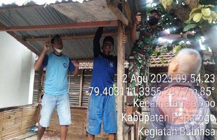 PONOROGO lintasjatimnews.com – Sertu Moh Yasin, anggota Koramil Tipe B 0802/14 Sawoo, Kodim 0802/Ponorogo yang bertugas menjadi Babinsa Sawoo hari ini turut bergabung bersama warga di wilayah desa binaan (Dukuh Kacangan), Desa/Kecamatan Sawoo, Kabupaten Ponorogo melaksanakan kerja bakti perbaikan Pos Kamling, Rabu (02/08/2023).