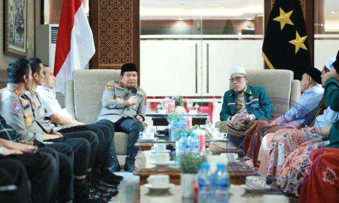 SURABAYA lintasjatimnews.com – Kapolda Jatim Irjen Pol Dr.Toni Harmanto,M.H bersama Pejabat Utama Polda Jatim menerima kunjungan Pengurus Majelis Permusyawaratan Pengasuh Pesantren se-Indonesia (MP3I), Majelis Pengurus Wilayah (MPW) Jatim di selasar Gedung Patuh Mapolda Jatim,Kamis (3/8/2023).