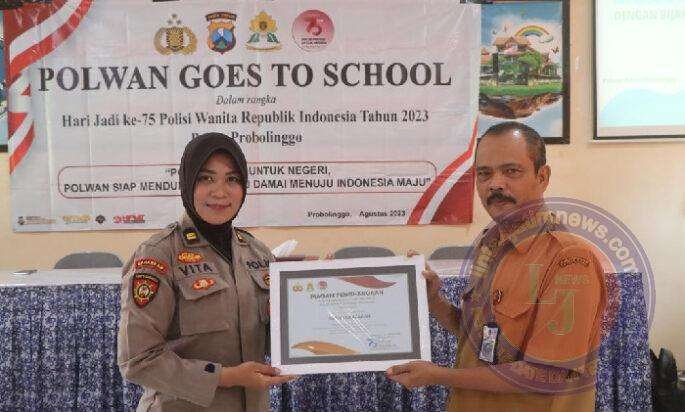 Kehadiran puluhan srikandi hebat Polres Probolinggo mendatangi sekolah menengah ini merupakan salah satu rangkaian kegiatan menyambut Hari Ulang Tahun (HUT) ke-75 Polisi Wanita (Polwan)