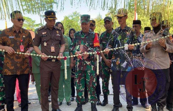 Dalam rangkaian kegiatan penutupan TMMD, Dandim 0728/Wonogiri Letkol Inf Deny Octavianto, melaksanakan pemotongan rangkaian bunga sekaligus peninjauan dilokasi sasaran fisik bersama jajaran forkopimda.