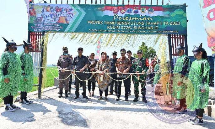Selanjutnya Bupati Sukoharjo Hj. Etik Suryani, S.E., M.M. didampingi Dandim 0726/Sukoharjo melaksanakan peresmian hasil kegiatan TMMD di lokasi sasaran fisik Rabat Beton dengan pengguntingan rangkaian ronce melati secara simbolis sebagai tanda bahwa jalan sudah dapat dimanfaatkan penggunaannya oleh warga masyarakat.