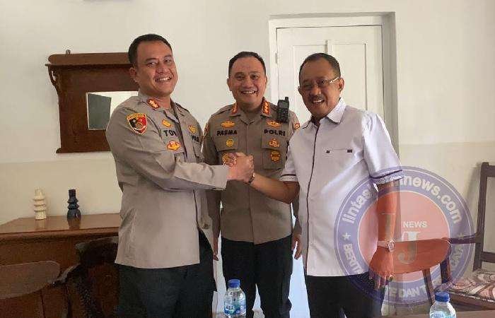 Didampingi Kapolrestabes Surabaya Kombes Pol Pasma Royce, keduanya saling mengobrol dan bersantai dengan saling melempar senyum saat ngopi bersama.