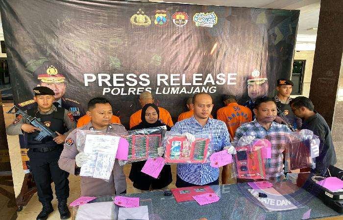 LUMAJANG lintasjatimnews.com – Polres Lumajang menangkap empat orang tersangka yang diduga memalsukan kartu elektronik pajak pasir.