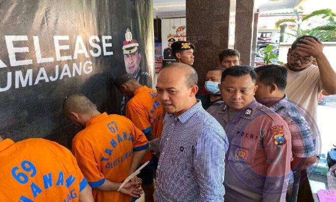 “Sampai saat ini kami menetapkan 4 orang tersangka, sedangkan satu tersangka masih DPO,” kata Dhedi, saat menggelar konferensi pers, di Mapolres Lumajang, kamis (10/8/2023).