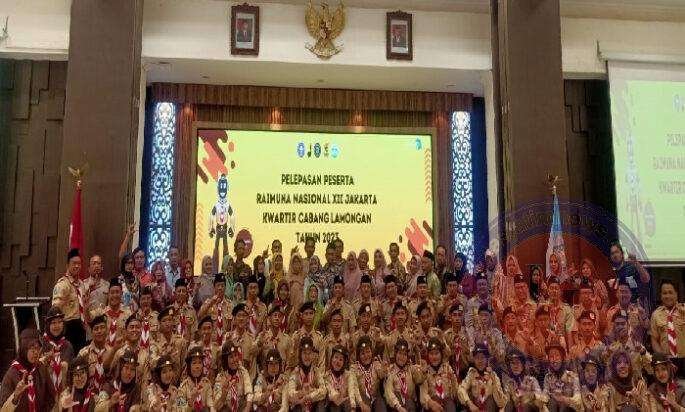 Upacara pelepasan peserta Raimuna bertempat di Aula Gajah Mada lantai 7 Kantor Pemerintah Daerah Lamongan, hari Sabtu (12/8/2023) diikuti 32 peserta. Hadir dalam acara Ketua Kwarcab Lamongan (Drs. H. Nalikan, MM.), Sekretaris Kwarcab (A. H. Farih, SH. MM.), jajaran pengurus Kwarcab, Pembina, dan wali peserta didik.