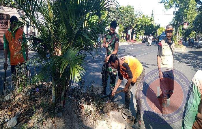 SURAKARTA lintasjatimnews.com – Babinsa Kelurahan Kerten Koramil 01 /Laweyan Kodim 0735/Surakarta Serka Sugiman dan Serda Bambang  bersama warga masyarakat dibantu oleh Dinas Lingkungan Hidup (DLH) Kota Surakarta melaksanakan kerja Bakti pembersihan taman dan perbaikan pembatas jalan di RW 9 Jln Adisucipto kelurahan kerten kecamatan Laweyan,Minggu (13/08/2023)