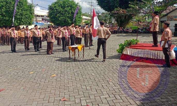 Pagi ini suasana lapangan di pusat kegiatan tampak semarak dengan kehadiran berbagai kalangan, baik pelajar maupun para pengajar, yang mengenakan seragam Pramuka dengan penuh kebanggaan.