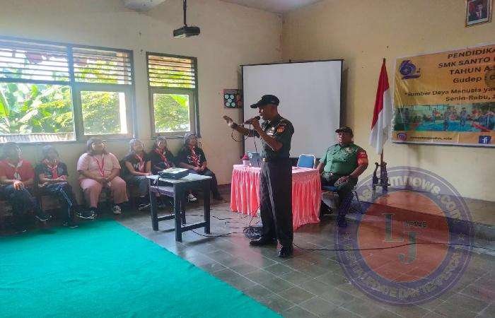 SURAKARTA lintasjatimnews.com – Bati Bhakti TNI dari Koramil 01/Laweyan Kodim 0735/Surakarta Peltu Mulyadi bersama sengan Babinsa Kelurahan Pajang Koptu Gondo melaksanakan komsos dengan memberikan materi wawasan kebangsaan (Wasbang) kepada siswa/siswi di SMK SANTO PAULUS di jln Dr Rajiman no.659 Kelurahan Pajang, Kecamatan Laweyan,Selasa (15/08/2023).