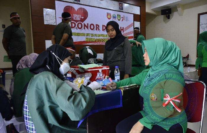 Kegiatan Donor darah diikuti oleh 150 Pendonor dari Anggota Kodim 0735/Surakarta, Persit, Anggota Polri, FKPPI, Pramuka, dan juga keluarga besar TNI (KBT).