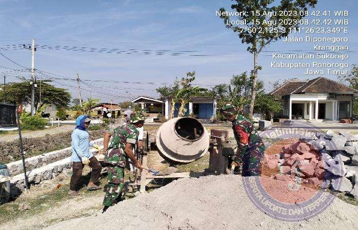 Dalam kerja bakti tersebut, anggota Koramil Tipe B 0802/06 Sukorejo membantu warga melanjutkan proses pembangunan saluran air di Desa Kranggan yang sudah berjalan beberapa waktu lalu dan merupakan proyek desa.