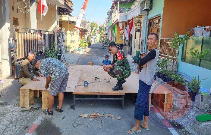 SURAKARTA lintasjatimnews.com – Menyambut Hari Ulang Tahun Kemerdekaan Republik Indonesia yang Ke – 78. Babinsa Tipes Koramil 03/Serengan, Kodim 0735/Surakarta Serka Anjasmoro gotong royong guna untuk menyambut malam Tirakatan yang diselenggarakan di Rt 07/15 Kel.Tipes, Kecamatan Serengan Rabu, 16 Agustus 2023,
