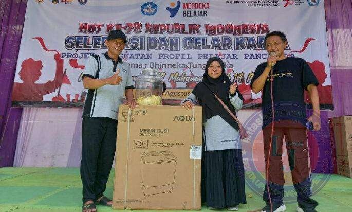 2. Umu Dwi Fatma (siswi) mendapatkan hadiah Kulkas