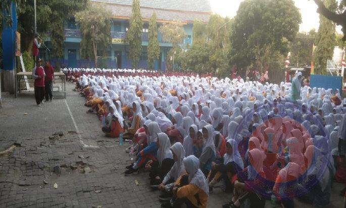 Selain membuat jalan raya bagaikan lautan manusia, halaman SMPM 12 pun nampak dipenuhi peserta jalan sehat hingga tumpah di pinggir jalan sepanjang SMPM 12 – Ponpes Al Ishlah. Terang Hamdan SPdi guru SMPM 12 yang rumahnya depan gerbang SMPM 12 ini.