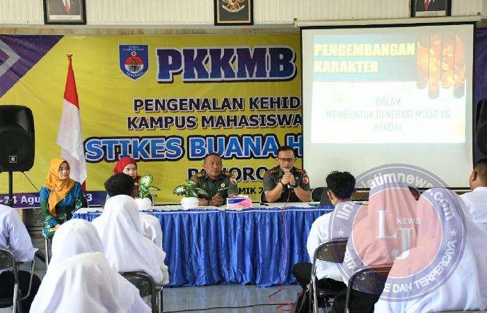 Dihadapan para Mahasiswa STIKES Buana Husada Ponorogo, Dandim 0802/Ponorogo, selaku nara sumber menyampaikan materi terkait Pengembangan Karakter agar para Mahasiswa STIKES BuanaHusana mempunyai sikap intelektual, anti kekerasan seksual, anti perundungan, anti Narkoba, anti korupsi dan Kampus Sehat.
