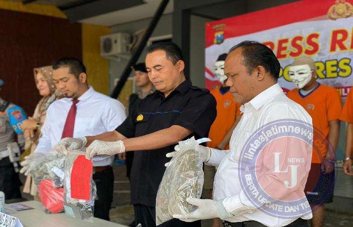 Iptu Ariek menjelaskan tiga orang yang saat ini sudah ditetapkan tersangka itu diamankan beserta barang bukti Daun Ganja kering sebanyak 1,07 Kg, 3 Unit Hp, 1 Bendel kertas papir, 5 (lima) pak plastic klip bening, 1 (satu) buah timbangan, dan beberapa barang bukti lainnya.
