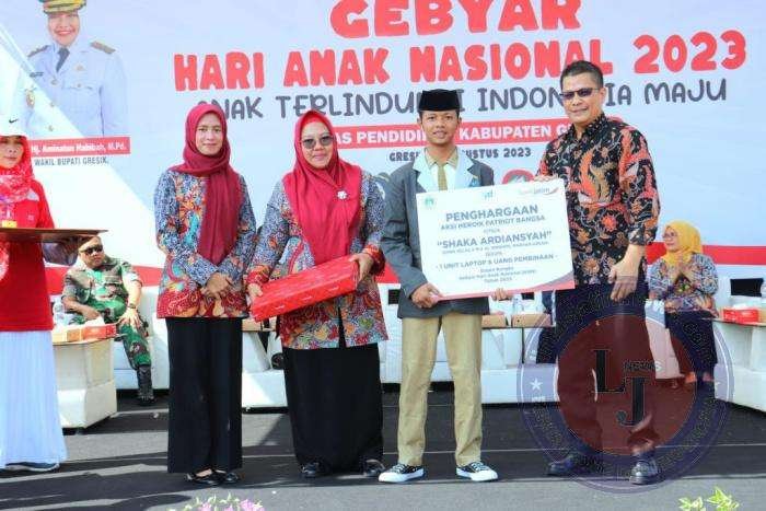 Selain itu juga diserahkan penghargaan kepada Sakha Ardiansyah siswa kelas X MA Al Ibrohimi Manyar Gresik. Diketahui Sakha melakukan aksi heroik dengan memanjat tiang bendera demi menyambung tali yang putus saat pelaksanaan upacara pengibaran bendera merah putih dalam rangka HUT RI ke 78.
