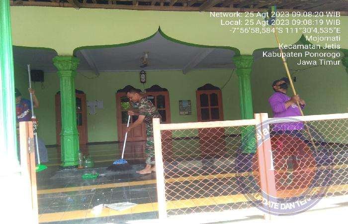 Babinsa Kodim 0802/Ponorogo Kerja Bakti Pembersihan di Mushala Bersama Warga