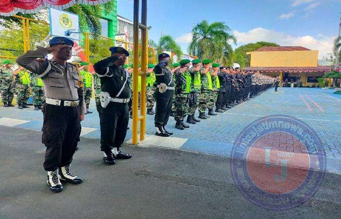 Dalam sambutannya Kapolres Pacitan mejelaskan total ada sekitar 750 personil gabungan, melibatkan Polres Pacitan maupun Kodim 0801/Pacitan, saat ini telah disiagakan penuh untuk mengamankan pelaksanaan pilkades serentak di 10 Kecamatan yang ada di Kab. Pacitan.