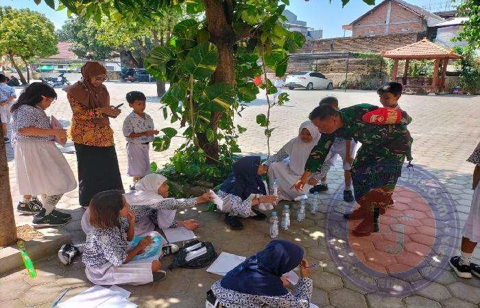 Babinsa Jayengan Pacu Semangat Belajar Serta Berikan Motivasi Kepada Adik-adik Sekolah Dasar