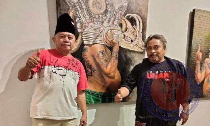 SURABAYA lintasjatimnews.com – Pelukis Sidoarjo Fathur Rojib, yang menggunakan tubuhnya sendiri sebagai media lukis, menggelar pameran tunggal bertajuk “Bloko Suto” di Art Lab Lounge Jalan Darmokali 14 Surabaya.
