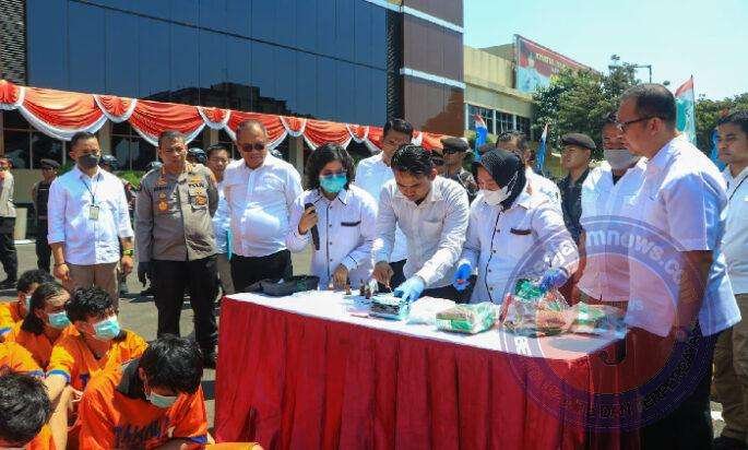 Kapolda Jawa Timur Irjen Pol Toni Harmanto, bersama stakeholder dan tokoh agam secara langsung menyaksikan dan memusnahkan barang bukti narkoba yang dilakukan oleh Ditresnarkoba Polda Jatim dan Polrestabes Surabaya dengan tersangka jaringan Jakarta – Jawa Timur dan Sumatra – Jawa.