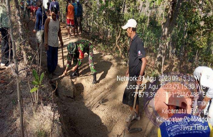Adalah Koptu Imam R, anggota Koramil Tipe B 0802/09 Balong, Kodim 0802/Ponorogo yang sehari – hari bertugas menjadi Bintara Pembina Desa (Babinsa) Ngumpul sedang melakukan kerja bakti pembersihan di sepanjang jalan bersama warga Dukuh Wotan, Desa Ngumpul, Kecamatan Balong, Kabupaten Ponorogo.