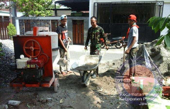 “ Kebetulan rumah milik Bapak Juariyanto sedang ada kegiatan (pemlesteran teras), sehingga saya bisa berbagi tenaga turut membantu melakukan pemlesteran teras di rumah tersebut, “ terang Serma Praptoyo.