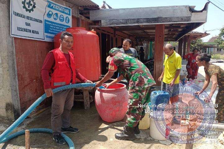 NGAWI lintasjatimnews.com – Berkurangnya Setok air bersih di musim kemarau ini mengakibatkan warga kesulitan mendapatkan kebutuhan air bersih,Babinsa Koramil 0805/15 Karanganyar Serda Budiyanto cepat tanggap untuk berikan bantuan Air bersih ke warga binaan di Desa Pandean, Kecamatan Karanganyar, Kabupaten Ngawi,Sabtu (02/09/23).
