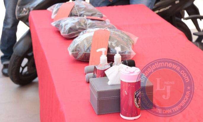 Barang bukti yang diamankan satu buah sepeda motor Honda PCX, dua unit Handphone, satu buah gunting, sarung Warna Hijau, selembar kertas bertulisan.
