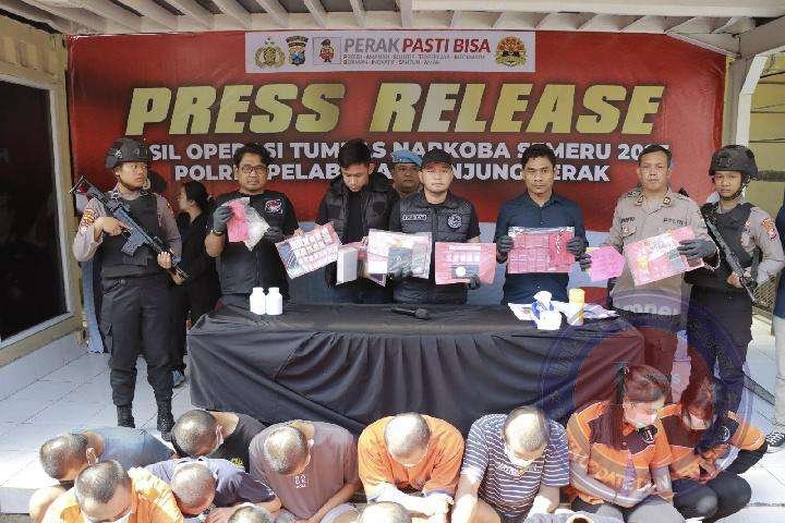 SURABAYA lintasjatimnews.com – TANJUNG PERAK – Dalam kurun selama 12 hari, Satuan Reserse Narkoba Polres Tanjung perak Polda Jatim bersama Polsek jajarannya mengungkap 13 kasus dan menangkap 16 orang tersangka penyalahgunaan Narkoba dengan barang bukti sebanyak 35,43 gram sabu.