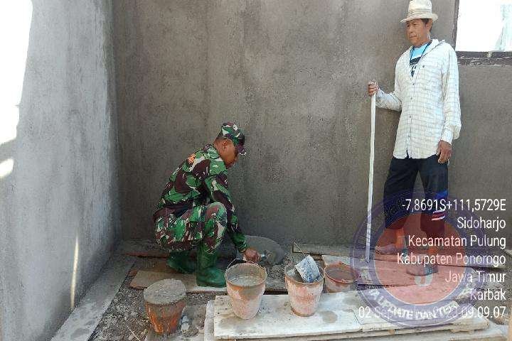 Peduli Sarana Ibadah, Babinsa Kodim 0802/Ponorogo Ikut Kerja Bakti Bangun Mushala