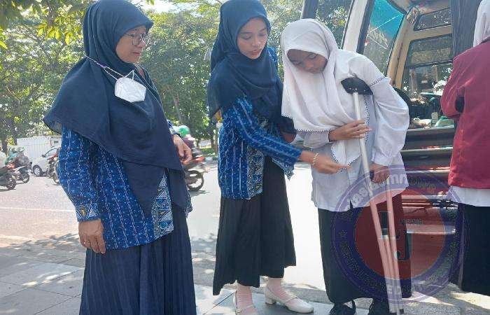 Tekat membara itu ia tunjukkan dengan tetap hadir ikuti kegiatan jurnalistik yang diadakan sekolahan, studi tour ke redaksi Jawa Pos di Surabaya, Senin 4/9/2023.