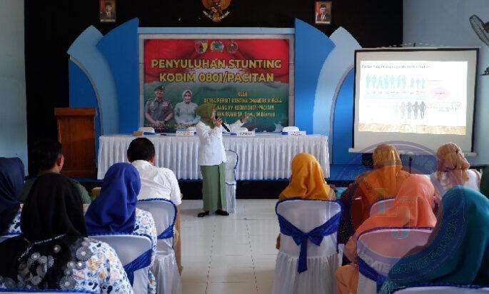 Begitu juga dengan kunjungan kerja Komandan Kodim 0801/Pacitan, Letkol Inf. Roliyanto di Koramil 0801/03 Arjosari bersama istri, dalam rangka penyuluhan stunting Tahun 2023 juga memberikan penyuluhan kepada 50 orang di wilayah Koramil 0801/03 Arjosari yang ditempatkan di aula Kantor Camat Arjosari.