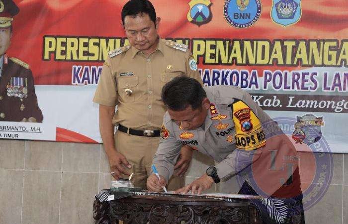 Penandatanganan MOU ini di tanda tangani oleh Bupati Lamongan dan Kapolres Lamongan dengan penyerahan simbolis dokumen MOU kepada masyarakat setempat, sebagai komitmen bersama untuk mewujudkan Kampung Bebas Narkoba di Lamongan.