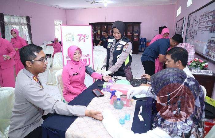 Kegiatan sosial ini digelar menjelang Hari Kesatuan Gerak Bhayangkari (HKGB) Ke-71 yang bertujuan menambah stok darah di rumah sakit dan membantu mereka yang membutuhkan transfusi darah.