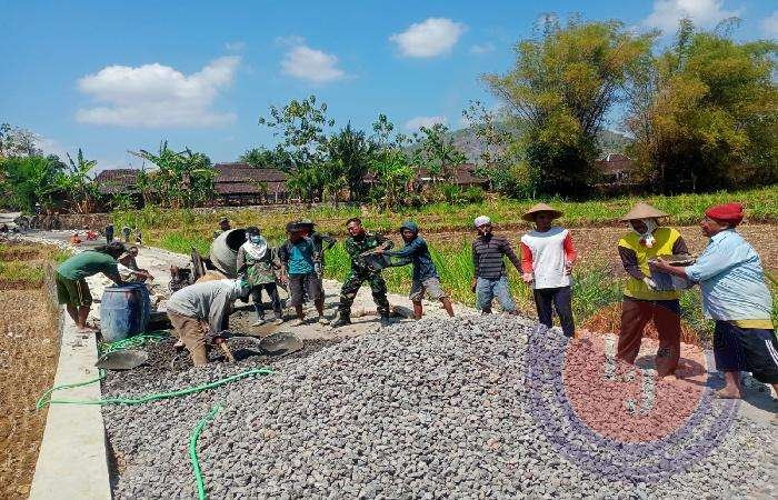 Kegiatan yang dipimpin langsung oleh Danramil Kapten Arh Hadi Santoso tersebut dengan melaksanakan betonisasi jalan sepanjang 150 meter swadaya dari masyarakat.