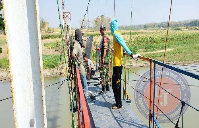 Melalui Kerja Bakti bergotong royong ini saya berharap Jembatan gantung dengan itu akan rampung secepatnya”ungkap Babinsa.