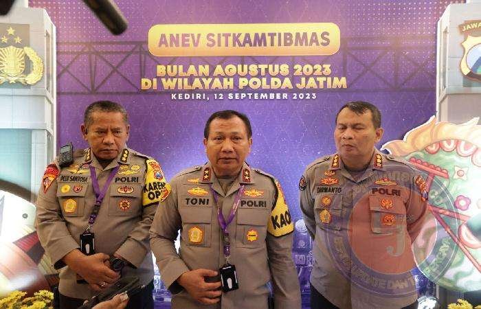 Hal itu seperti disampaikan oleh Kapolda Jawa Timur Irjen Pol Dr.Toni Harmanto,M.H saat menggelar Analisa dan Evaluasi (Anev) Sitkamtibmas bulan Agustus 2023, di Kota Kediri Jawa Timur bersama para pejabat utama (PJU) Polda Jatim dan diikuti oleh Kapolres/ta jajaran Polda Jatim, Selasa (12/9/2023).