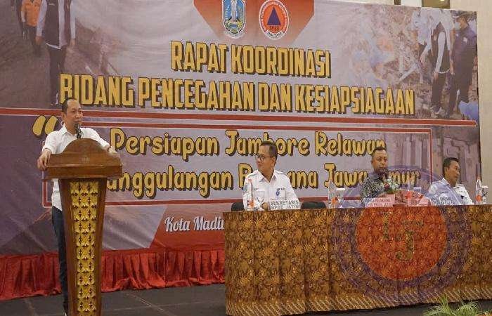 Sedangkan Rapat Koordinasi Bidang Pencegahan dan Kesiapsiagaan dalam rangka Persiapan Jambore Relawan Penanggulangan Bencana Jawa Timur diadakan di Convention Hall, The Sun Hotel, Madiun, Rabu-Kamis, 13-14 September 2023.