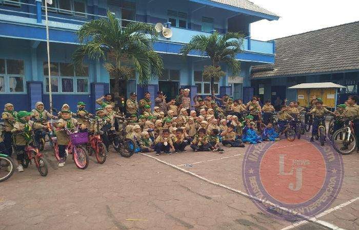 Siswa-Siswi membawa sepeda dan ada yang membawa sepeda listrik. Siswa siswi sangat antusias dan senang diperkenalkan rambu rambu lalu lintas dengan tutor langsung dari Polantas Polsek Paciran.