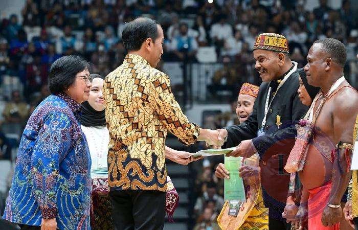 “Saya titip kepada para pegiat lingkungan, kepada para ketua adat, kepada kelompok perhutanan sosial, para penyuluh agar kita giatkan kembali rehabilitasi hutan, perbaikan hutan. Pemerintah bersama-sama dengan masyarakat, para pegiat lingkungan mulai, nanti kalau musim hujan datang, semua nanam pohon. Setuju?” ujar Presiden Jokowi saat menyampaikan sambutannya pada acara Festival LIKE (Lingkungan, Iklim, Kehutanan, Energi EBT) Road to COP28 UAE 2023 yang digelar di Indonesia Arena, Kompleks Gelora Bung Karno, Jakarta.(18/09/23).