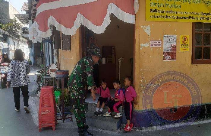 SURAKARTA lintasjatimnews.com – Sertu Teguh K selaku Babinsa Kelurahan Gandekan Koramil 04/Jebres Kodim 0735/Surakarta memberikan motivasi kepada adik-adik Paud untuk memacu semangat para murid Paud khususnya Paud Pratama Bintang yang ada diwilayah Kelurahan Gandekan, Kecamatan Jebres, Senin (25/09/2023).